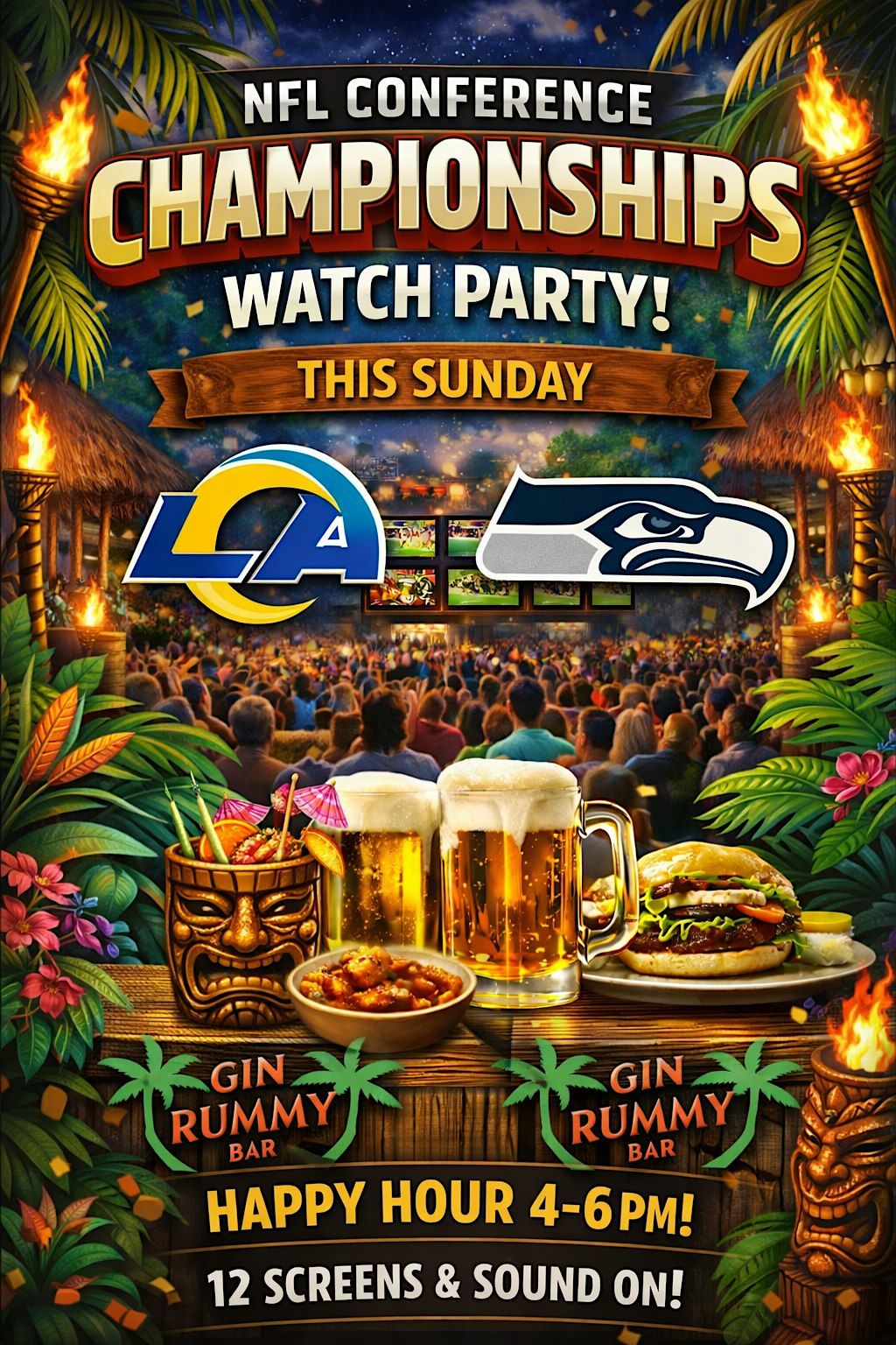 Get ready for an epic Sunday with our in-person NFL Conference Championship Watch Party! Join fellow fans for big screens, great vibes, and non-stop football action. Bring your cheers, wear your team colors, and let's make this game day unforgettable. Snacks and drinks will be flowing — it's the perfect spot to catch all the thrilling moments live. Don't miss out on the fun and fierce rivalry!