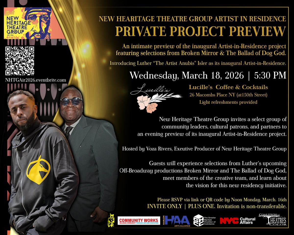 Hosted by Voza Rivers, Executive Producer of New Heritage Theatre Group