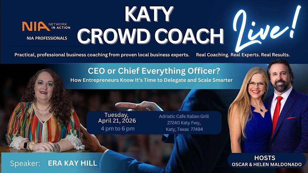 NIA Katy Crowd Coach Live is a monthly business coaching experience where established local professionals coach live on what actually works—while the audience gains insight, connections, and real-world perspective.