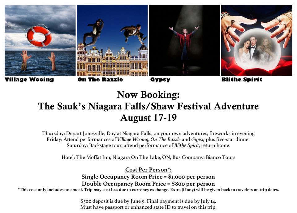 Niagara/Shaw Festival Trip – Tentative PlanThursday, August 17