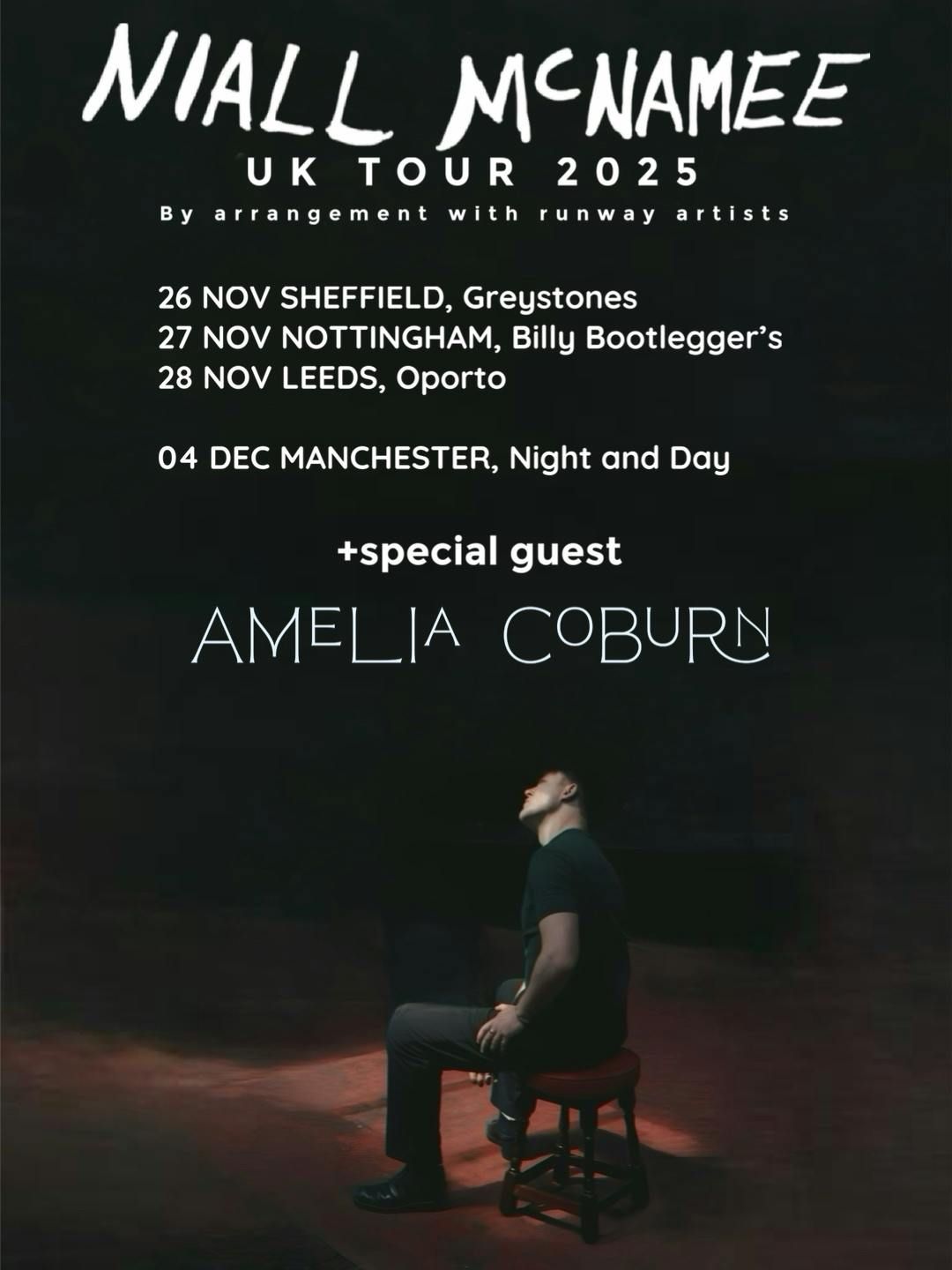 Support from Amelia CoburnNiall McNamee is an Irish singer-songwriter and actor known for his own passionate, thoughtful and full-blooded songs. He has starred opposite Pierce Brosnan, fought with Jackie Chan and now is starring as the leading role in numerous feature films.Niall moved to London at 17 years old working on building sites whilst growing a devoted fan base playing gigs in pubs and music venues across London.He began his acting career on London’s West End as Romeo in ‘Romeo and Juliet’ before moving into film and tv and even having a major fight scene with Jackie Chan in ‘The Foreigner’After a sold out headline tour of the UK and Ireland Niall was cast as the leading role in award winning feature film ‘Love Without Walls’ in which he plays a struggling Songwriter trying to navigate London’s harsh streets. The soundtrack to the film is made up of Niall’s original songs.This year he sold out the Irish Cultural Centre breaking records for capacity at the venue speed of sell out.He has supported the likes of Declan O’Rourke, David Keenan, Junior Brother, The Dubliners and played Isle of Wight and Cambridge Folk festival.His debut album and another leading role in a feature film are due soon making 2025 a big and busy year.