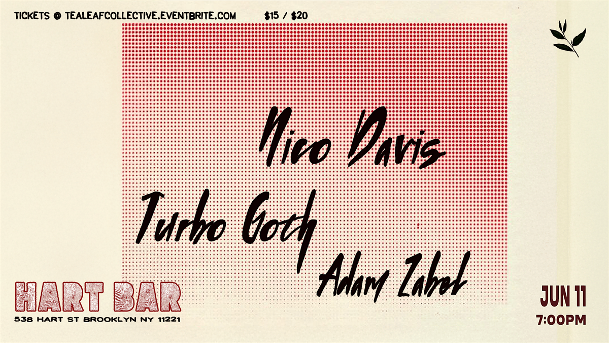 Nico Davis / Turbo Goth / Adam Zabel / TBD at Hart Bar on June 11th.About this Event
