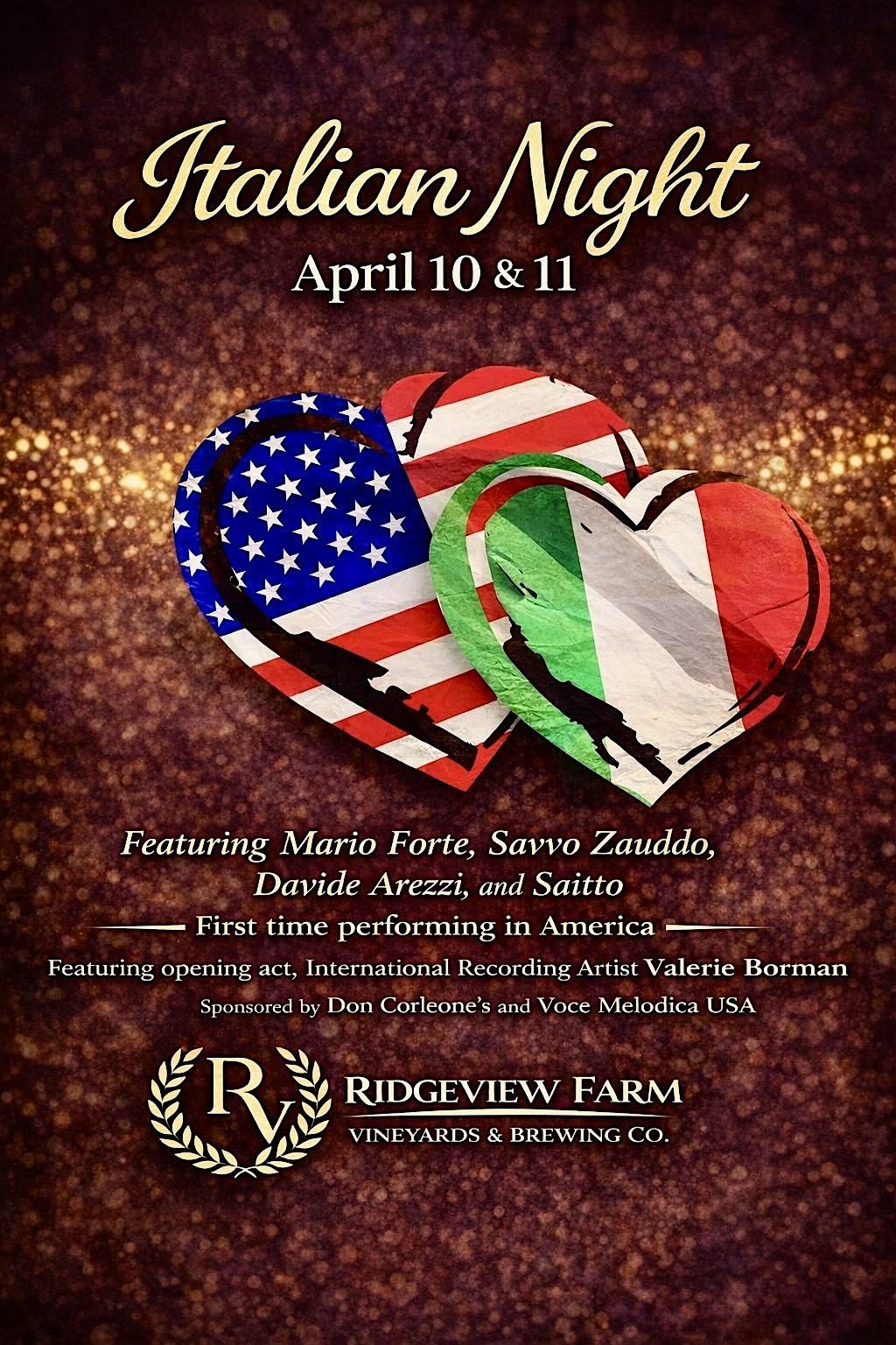 First time performing in America! Four of the most popular Italian performing artists will bring it to the Lehigh Valley - TWO NIGHTS!!! Join us for Italian Night, featuring an authentic Italian meal prepared by Chef Salvatore DiMaggio, of Don Corleone's (full menu details below)