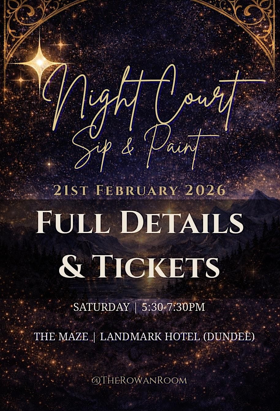 Step into the Night Court for a cosy, creative sip & paint experience inspired by all things bookish, fae, and magical. Hosted at The Maze at the Landmark Hotel, Dundee, you’ll be seated in a conservatory style setting that is designed for book lovers, creatives, and anyone looking for a relaxed yet enchanting night out.