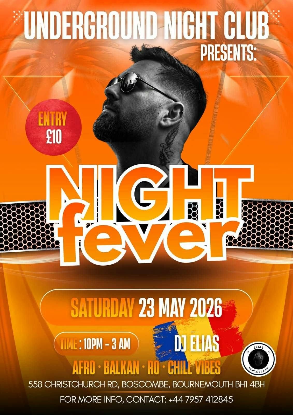π₯ NIGHT FEVER β SATURDAY 23RD MAY 2026 π₯Get ready for a night full of energy, music and unforgettable vibes at Underground Night Club! Weβre bringing you NIGHT FEVER β the ultimate party experience with DJ ELIAS on the decks all night long π§π₯