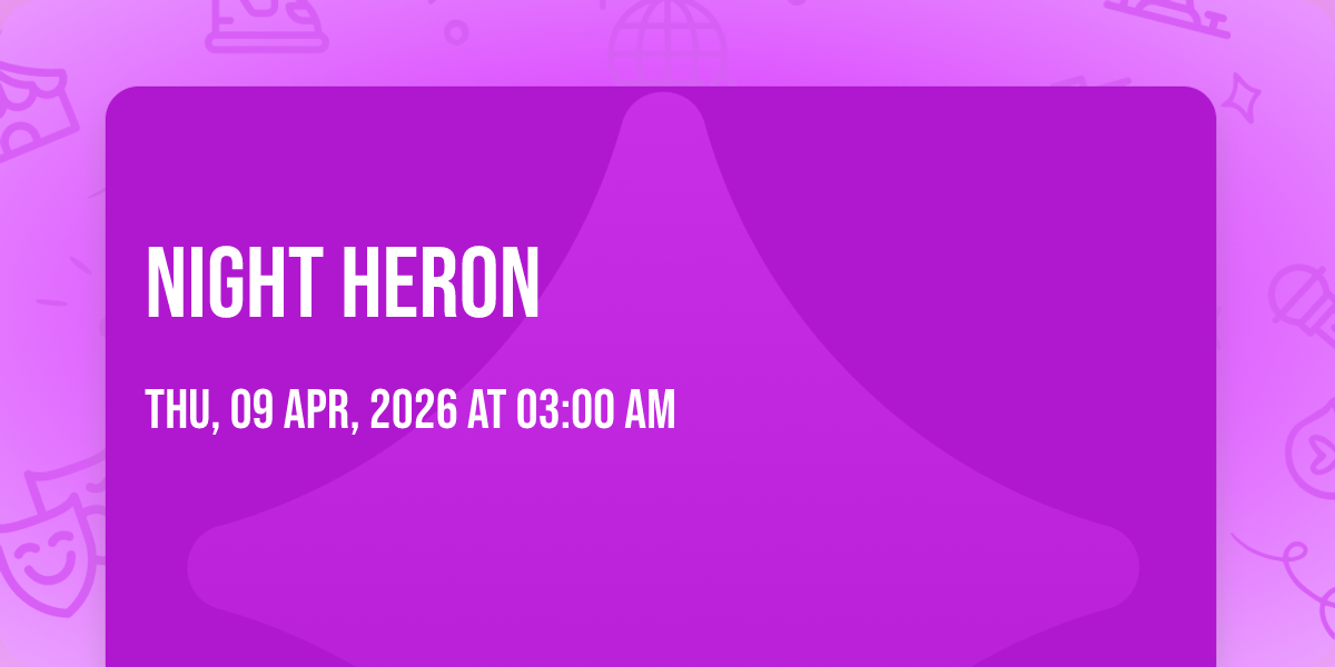 ๐ Location: 45.5514, -122.676๐ Welcome to Night Heron, where dreams come alive and possibilities are endless! ๐๏ธ Join us at Mississippi Studios in the heart of Portland, OR for an event that defies expectations. ๐ On April 9th, 2026 at 03:00 AM, be part of something truly extraordinary as we bring together innovation, entertainment, and pure magic. โจ Every aspect has been carefully designed to ensure an unforgettable experience for all our guests. Whether you're seeking adventure, inspiration, or simply a break from the ordinary, this event promises to deliver beyond your wildest dreams. ๐ Prepare for a journey into the extraordinary!
