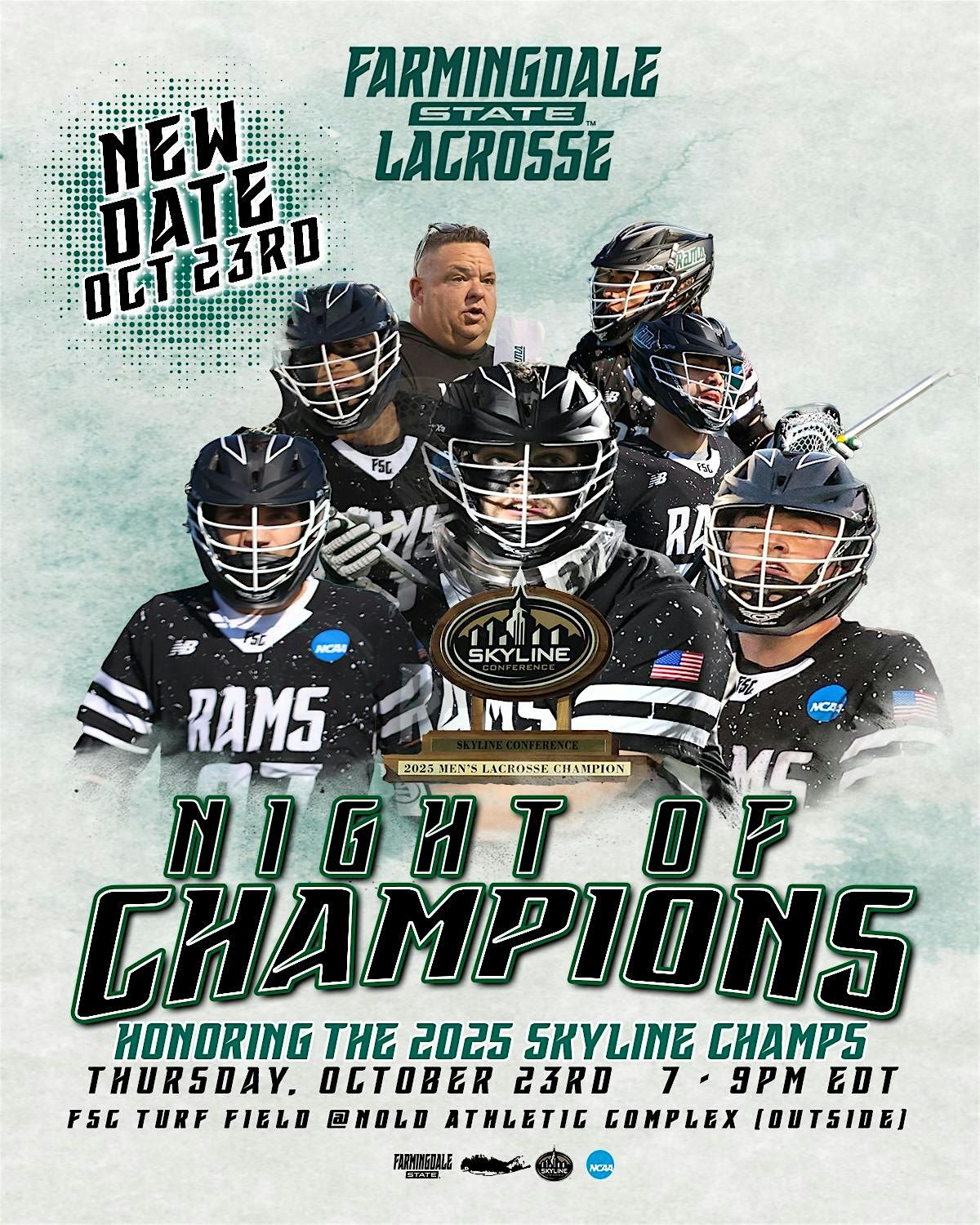 Come join us for a night full of champions. We are honoring our 2025 Skyline Champions Men's Lacrosse Team. A Ring Ceremony will take place to recongnize those involved with last years Skyline Championship Team. We will be joined by family, friends, alumni, and program donors. Food and beverages will be included with the purchase of a ticket. Members of the 2024-2025 Farmingdale State Lacrosse Team will be complimentary.