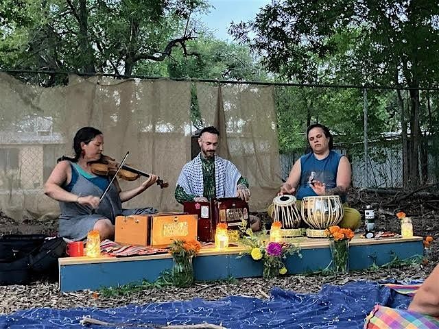 featuring siddhart chitnis (tabla), sahar farooqi khundmiri (sitar), rachna vanjani (harmonium, manjira, vocals), maria mcmullough (violin, manjira, vocals), and vir desai (dholki, harmonium, manjira, vocals).