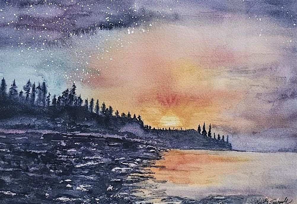 In this class, artists will focus on painting deep night skies, soft stars, moonlight, and the fading glow of early morning. We’ll practice layering transparent washes, creating smooth gradients, lifting light, and adding subtle details to capture mood, depth, and atmosphere. This relaxed, welcoming class is perfect for beginners and practicing artists who want to experiment with darker palettes, glowing light, and the peaceful moments at night’s end. All supplies provided. However, you are welcome to bring your own brushes and paints. Please bring a couple reference pictures for you to paint. I will also have some references available cost $45.