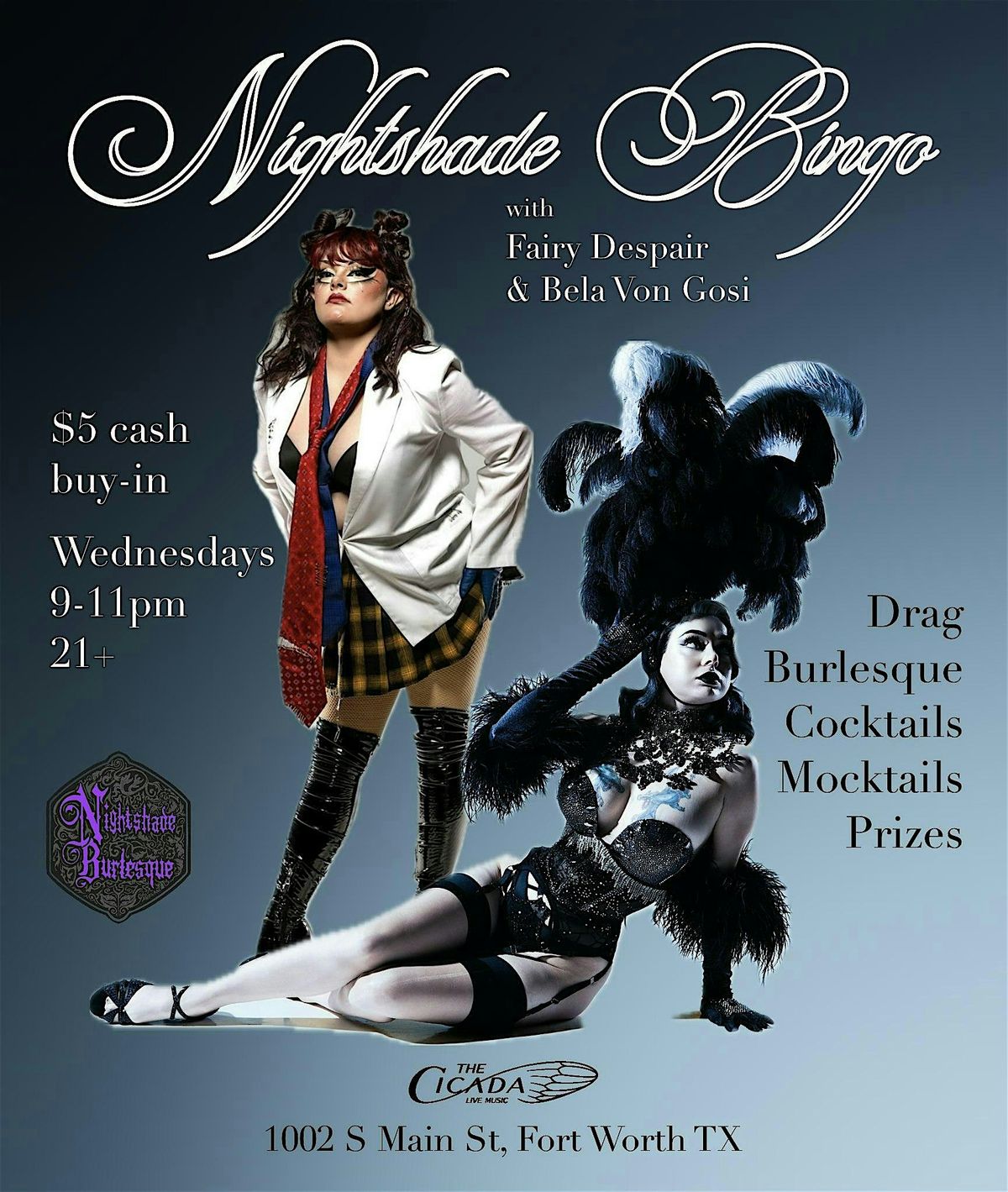 Nightshade Bingo hosted by Bela Von Gosi & Fairy Despair every Wednesday at 9PM at The Cicada!!
