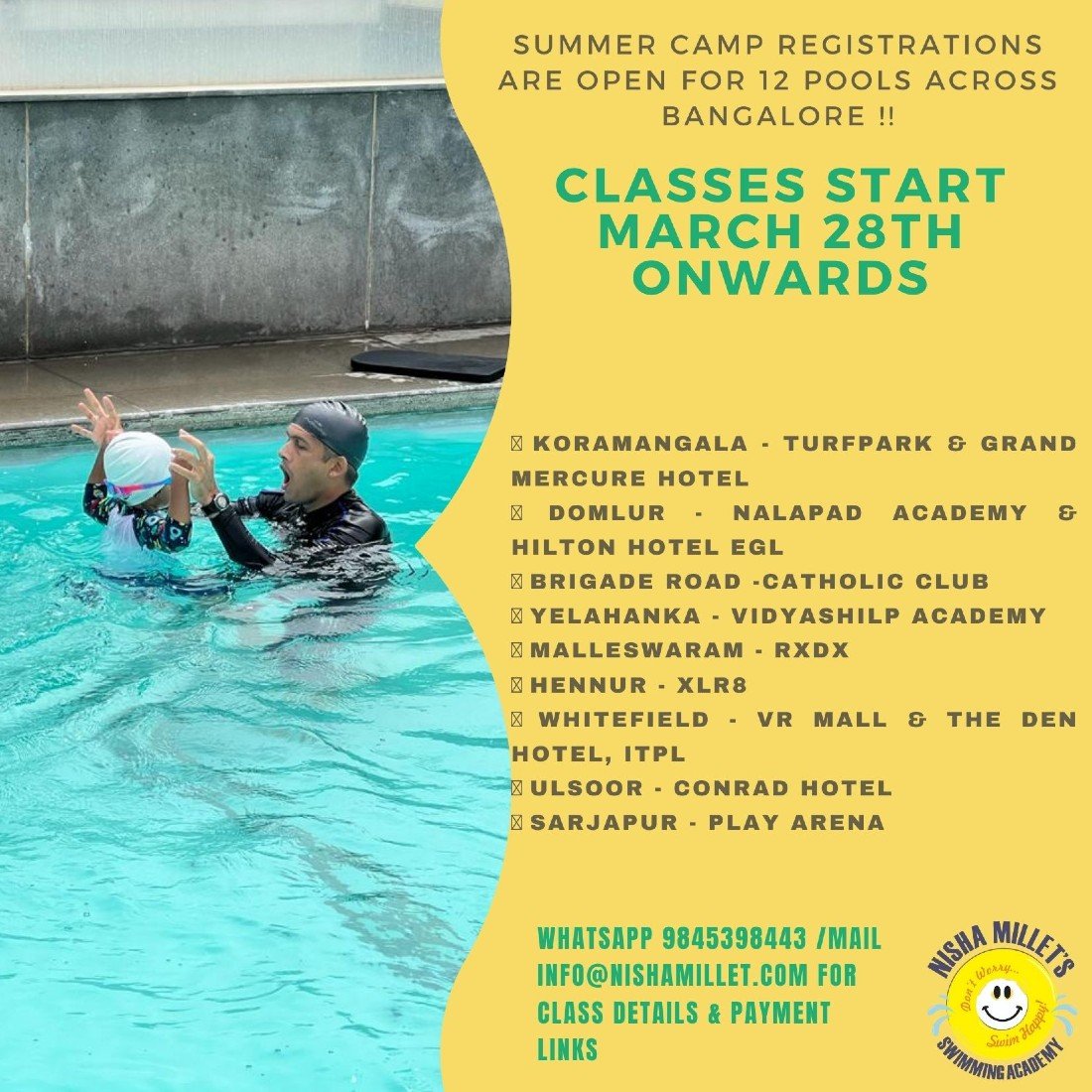 ?♀️ Swimming Classes across 12 pools go live from March 26th(Weekend classes) & March 28th (Weekday classes)