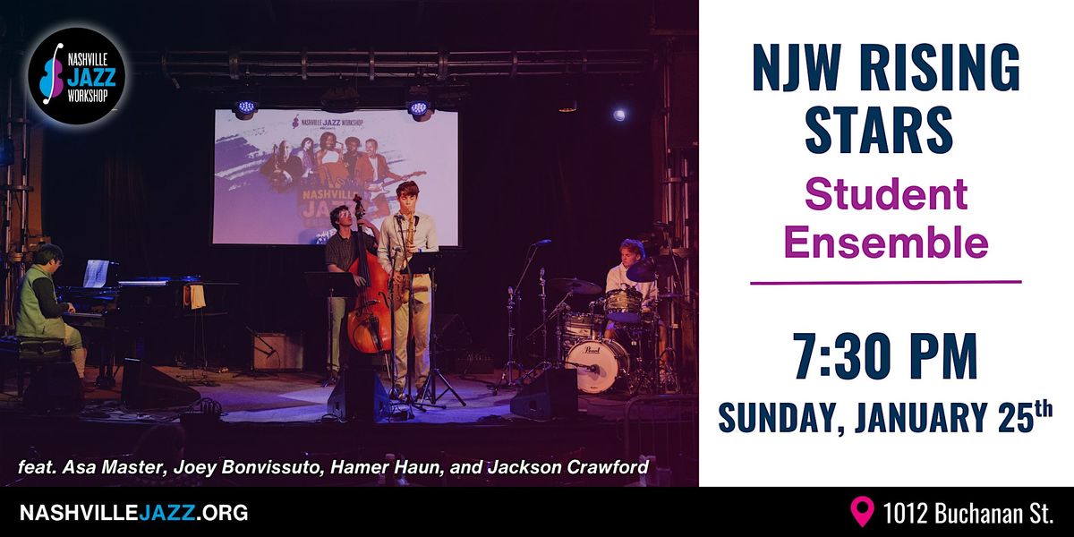 Fresh off a phenomenal set at the inaugural Nashville Jazz Festival, the NJW Rising Stars makes their debut full-length concert performance, blending original compositions and arrangements with classic tunes from Kenny Garrett, Herbie Hancock, Benny Golson, Freddie Hubbard, and more. Support the future of jazz in Nashville and hear why these high-school students are more than deserving of taking the NJW stage!