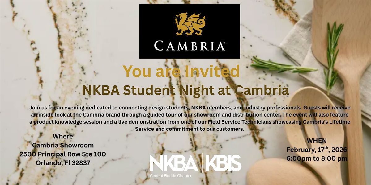 Cambria, NKBA CFC and PTC Student Chapter invite you to join us for a fun and engaging evening connecting design students, NKBA members, and industry professionals. Enjoy a behind-the-scenes look at the Cambria brand with a guided tour of our showroom and distribution center.