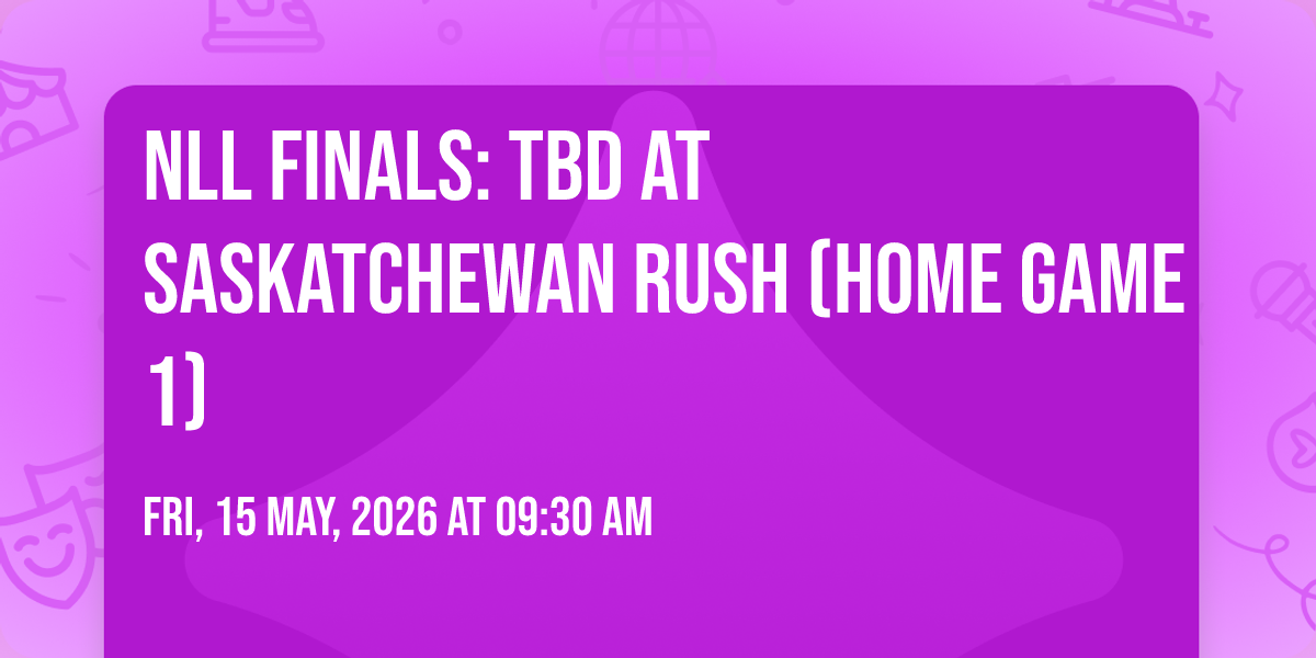 π Location: 52.1882, -106.676π Be part of history at NLL Finals: TBD at Saskatchewan Rush (Home Game 1), an extraordinary gathering that will captivate your imagination! ποΈ The prestigious SaskTel Centre in Saskatoon, SK sets the stage for an unforgettable experience on May 15th, 2026 at 09:30 AM. β¨ They are bringing together the finest elements of entertainment and innovation to create moments that will take your breath away. From the moment you arrive, you'll be immersed in an atmosphere of wonder and excitement. π― This carefully planned event ensures every guest experiences something truly special. π Early booking is recommended for this must-attend event of the season!