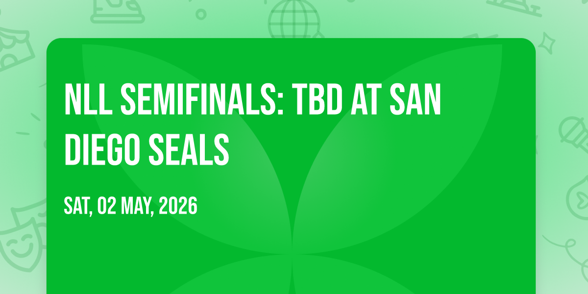 📍 Location: 32.7553, -117.212🎉 Welcome to NLL Semifinals: TBD at San Diego Seals, where the impossible becomes possible and dreams take flight! 🏛️ Join us at Pechanga Arena San Diego in the heart of San Diego, CA for an event that will redefine your expectations. 📅 On May 11th, 2026 at 10:30 AM, witness the transformation of space and time into something truly magical. ✨ It's a curated experience combining the best of innovation, entertainment, and community spirit, creating moments that will be remembered for years to come. Whether you're a first-time visitor or a seasoned enthusiast, prepare to be amazed. 🎊 Book now to ensure your place in this unforgettable experience!