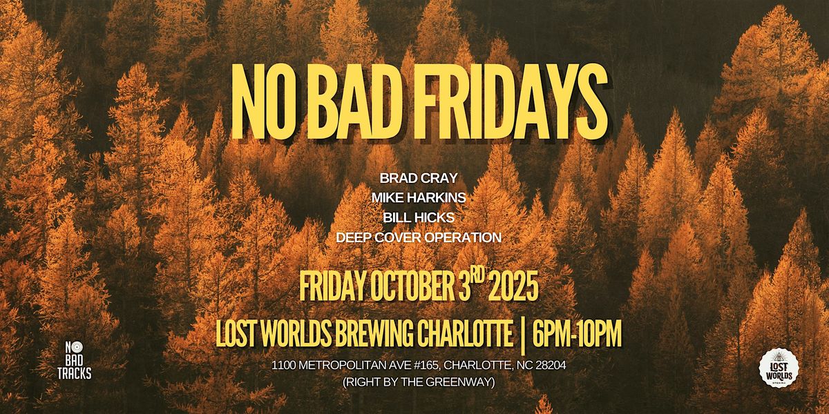 Come join us for a night of good vibes and great music at Lost Worlds Brewing - Charlotte Taproom at Metropolitan! Our event, NO BAD FRIDAYS, will feature local DJs and rotating taps. Grab a drink, relax, and enjoy the tunes, or bring your dancing shoes.