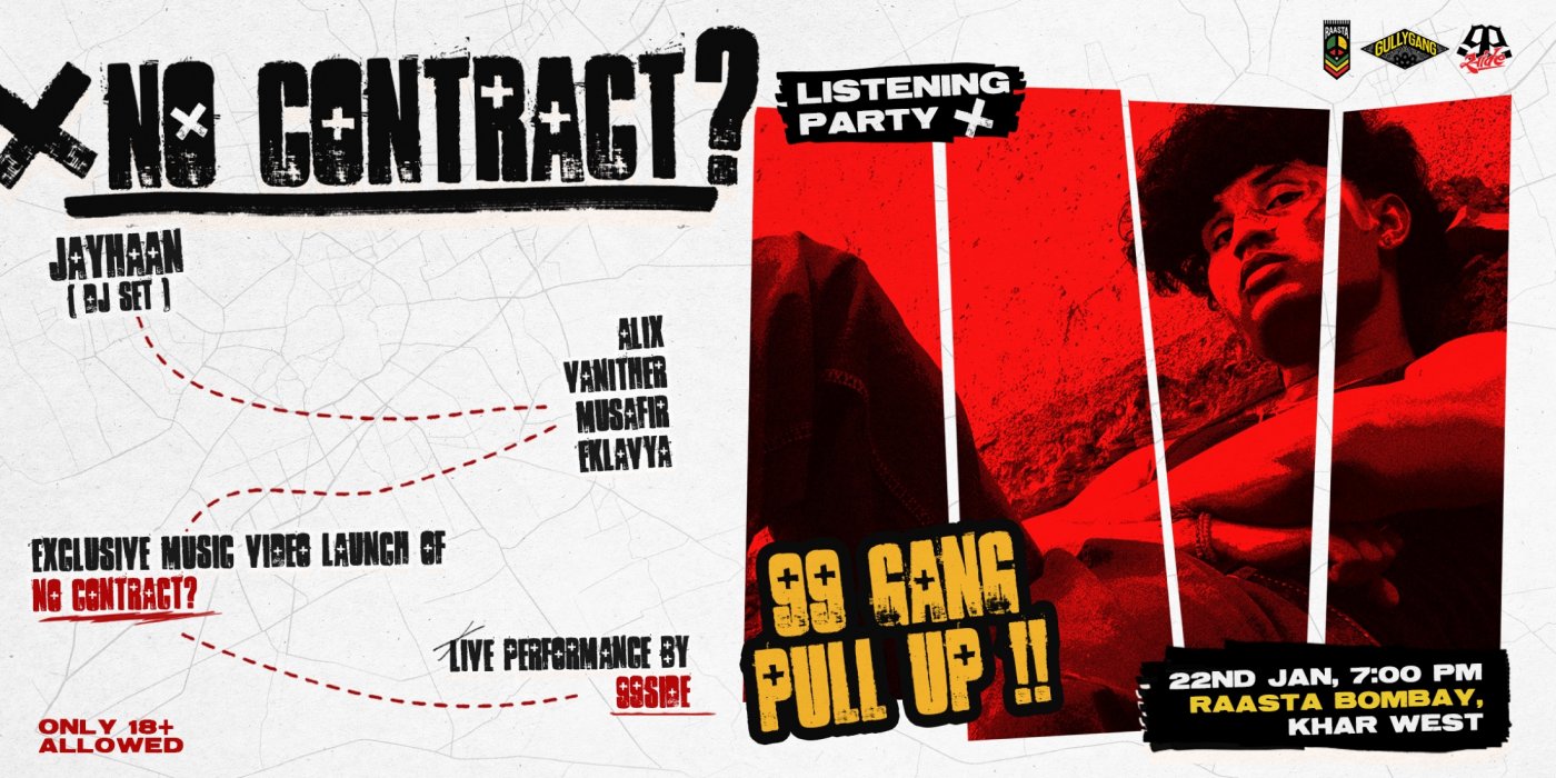 99side invites you to the listening party of his most anticipated single, his debut after MTV Hustle, "NO CONTRACT?"