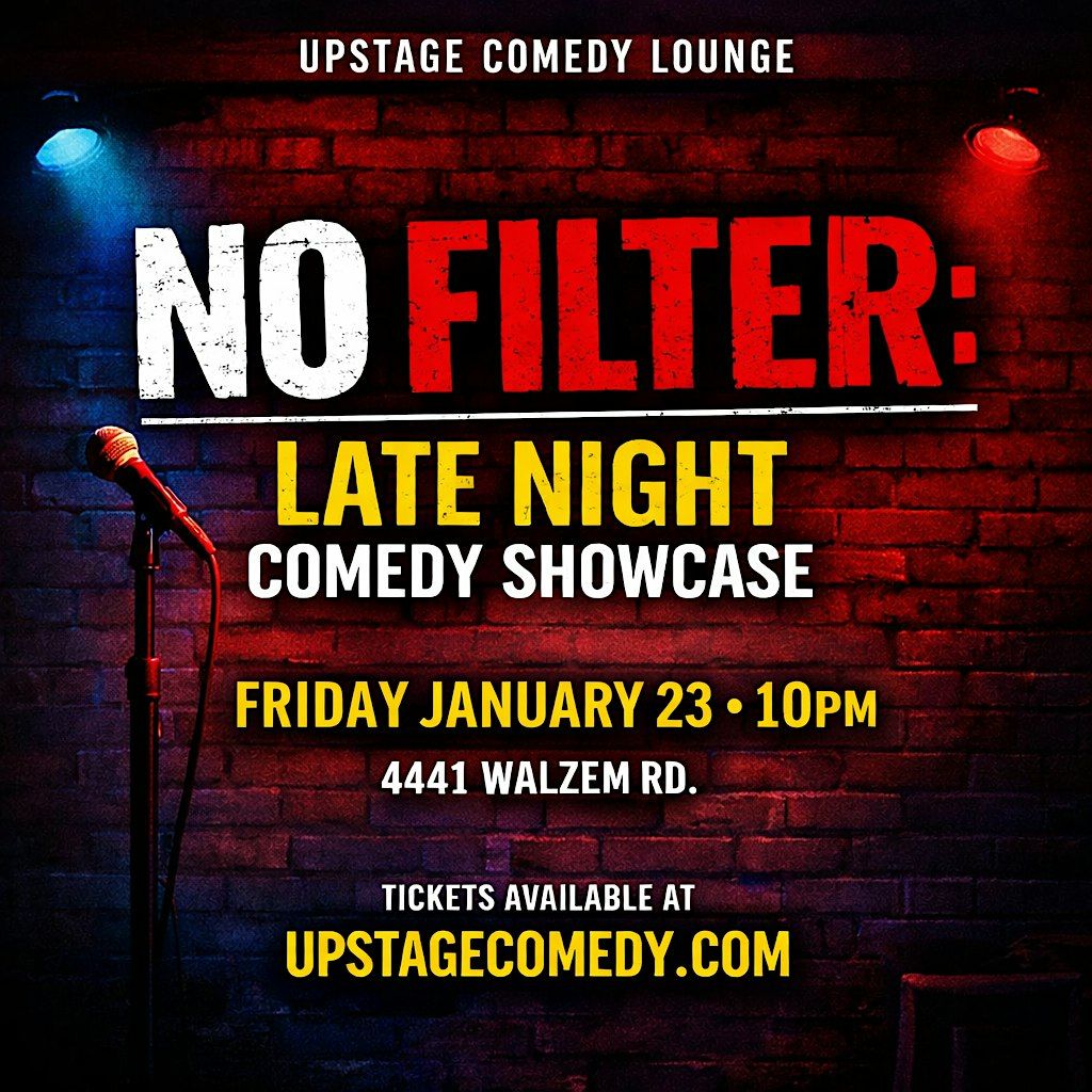Get ready to laugh your socks off at NO FILTER, the ultimate late night comedy experience! Join us in person for a night packed with hilarious stand-up, crazy jokes, and no holding back. Whether you're a comedy junkie or just need a good chuckle, this showcase is where the laughs never stop. Bring your friends, grab a seat, and prepare for a night of pure fun and funny vibes!