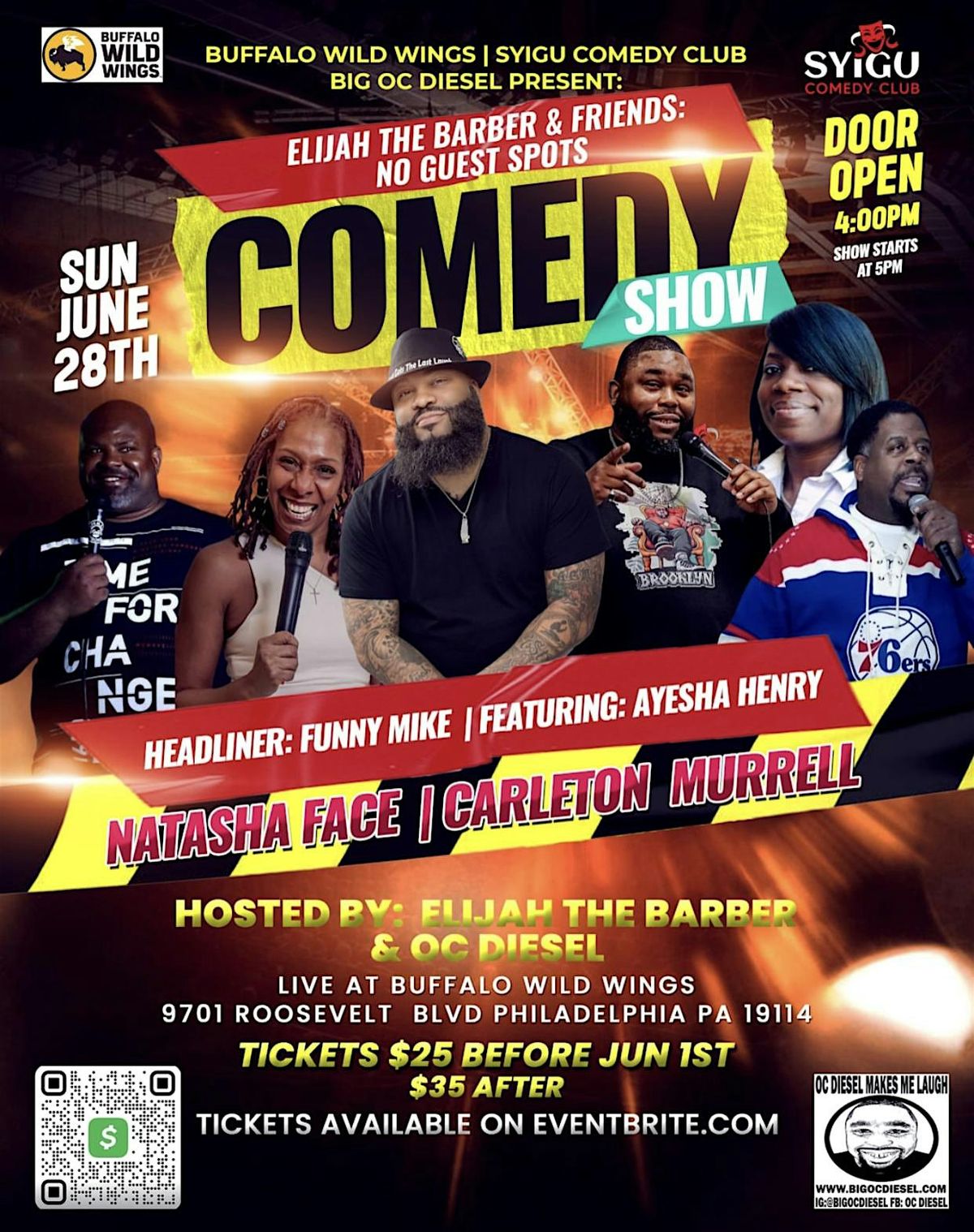 Get ready for a night of nonstop laughs as SYIGU Comedy Club teams up with Buffalo Wild Wings and Big OC Diesel to bring you an unforgettable comedy experience!