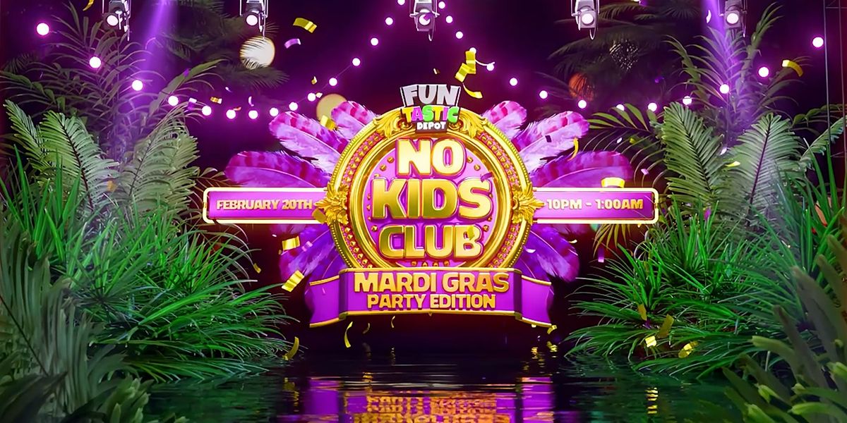 No Kids Club - Mardi Gras Adults Party at Funtastic Depot