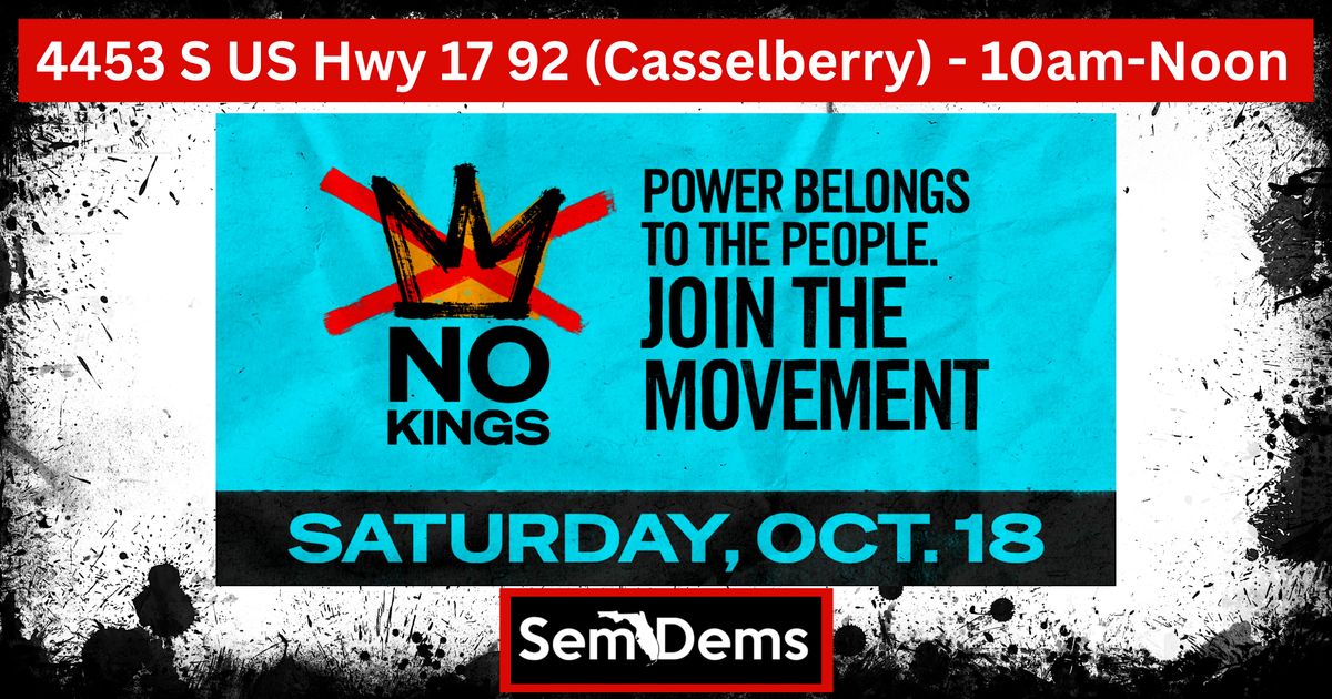 Welcome to the No Kings Peaceful Protest! Join us at 4453 S US Hwy 17 92 (Casselberry) - 10am-Noon for a day of unity and solidarity. Let your voice be heard in a peaceful and respectful manner. Together, we can make a difference and stand up for what we believe in. Spread the word and bring your friends along. See you there!