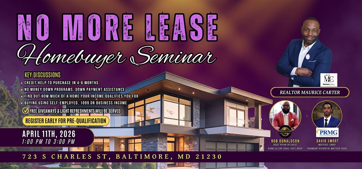 Join us for the "NO MORE LEASE" Homebuyer Seminar!
