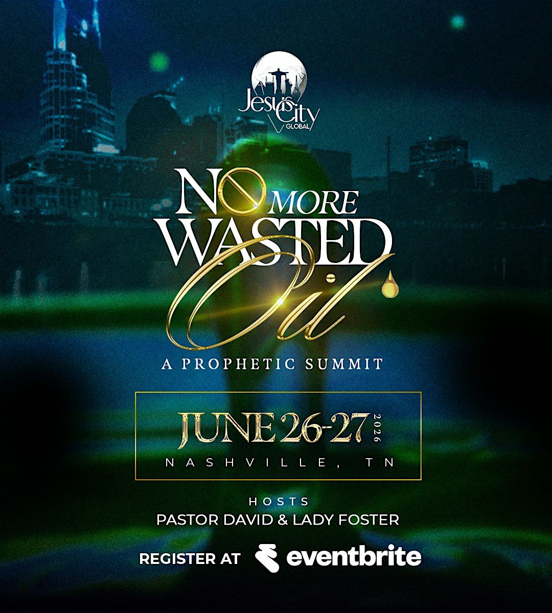 Join Jesus City Global for an empowering and transformative weekend at the No More Wasted Oil Summit in Nashville, TN. This event is designed to equip believers with biblical wisdom, prophetic strategies, and spiritual renewal.