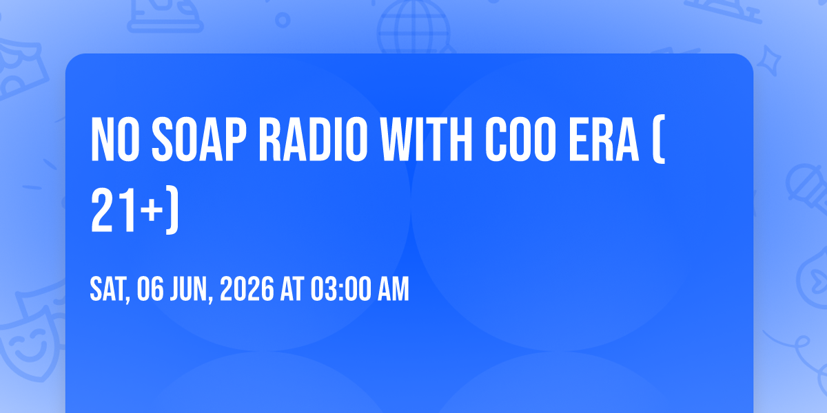 π Location: 45.5194, -122.676π Be part of history at No Soap Radio with Coo Era (21+), an extraordinary gathering that will captivate your imagination! ποΈ The prestigious Jack London Revue - Portland in Portland, OR sets the stage for an unforgettable experience on June 6th, 2026 at 03:00 AM. β¨ They are bringing together the finest elements of entertainment and innovation to create moments that will take your breath away. From the moment you arrive, you'll be immersed in an atmosphere of wonder and excitement. π― This carefully planned event ensures every guest experiences something truly special. π Early booking is recommended for this must-attend event of the season!