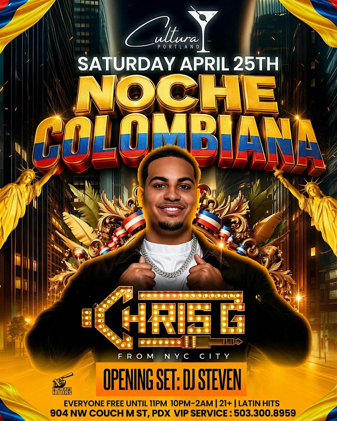 Portland 🇨🇴 Saturday April 25th we bringing the energy heavy for Noche Colombiana at Cultura PDX! Direct from New York — @chrisgnyc_ alongside @djstteven_k all night long 🎶🔥