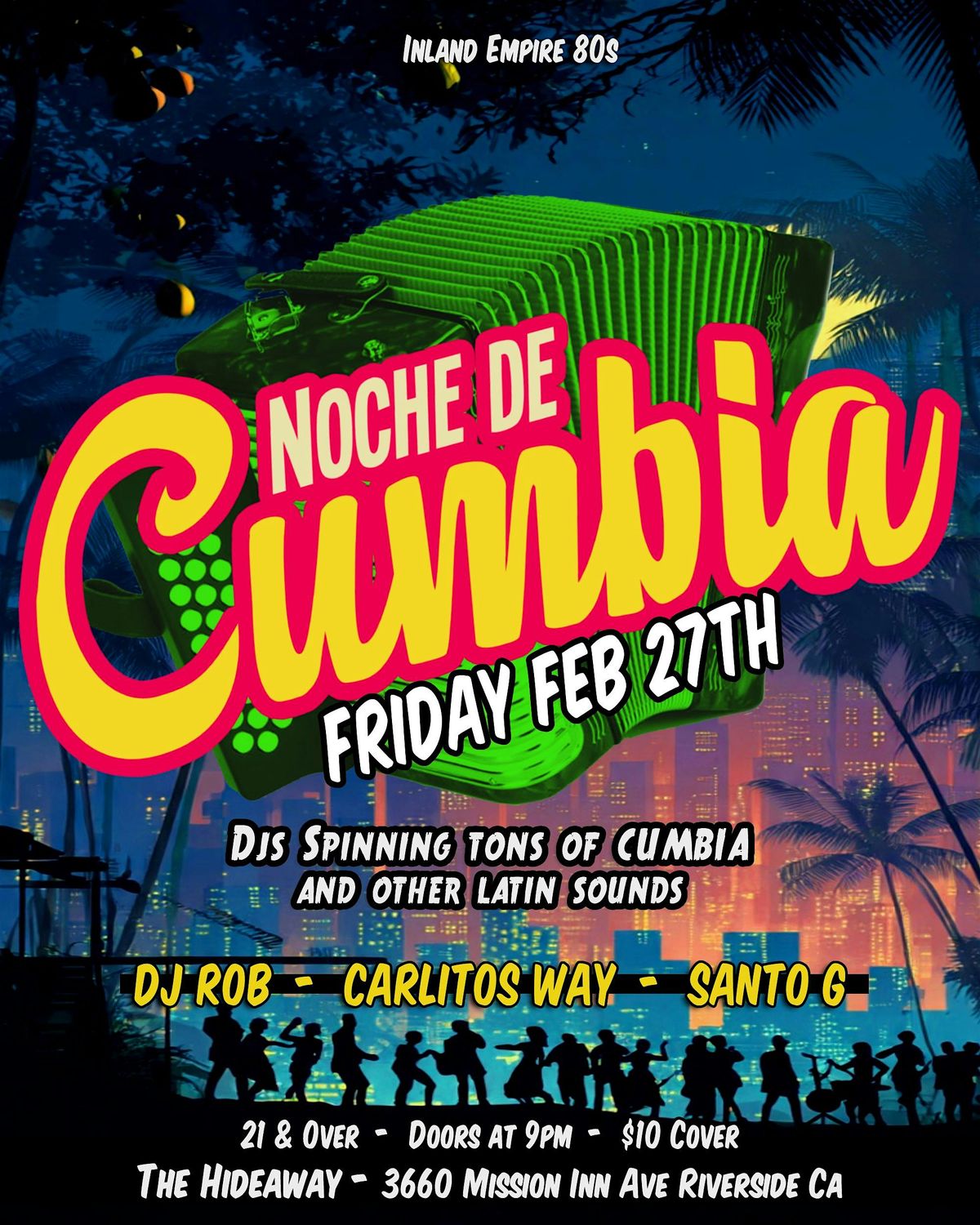 Friday Feb 27th at The Hideaway in Riverside! Don't miss the next Noche De Cumbia!