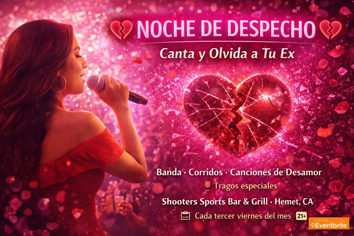 Noche de Despecho llega a Shooters Sports Bar & Grill- HEMET para una noche llena de música, tragos y puro sentimiento.