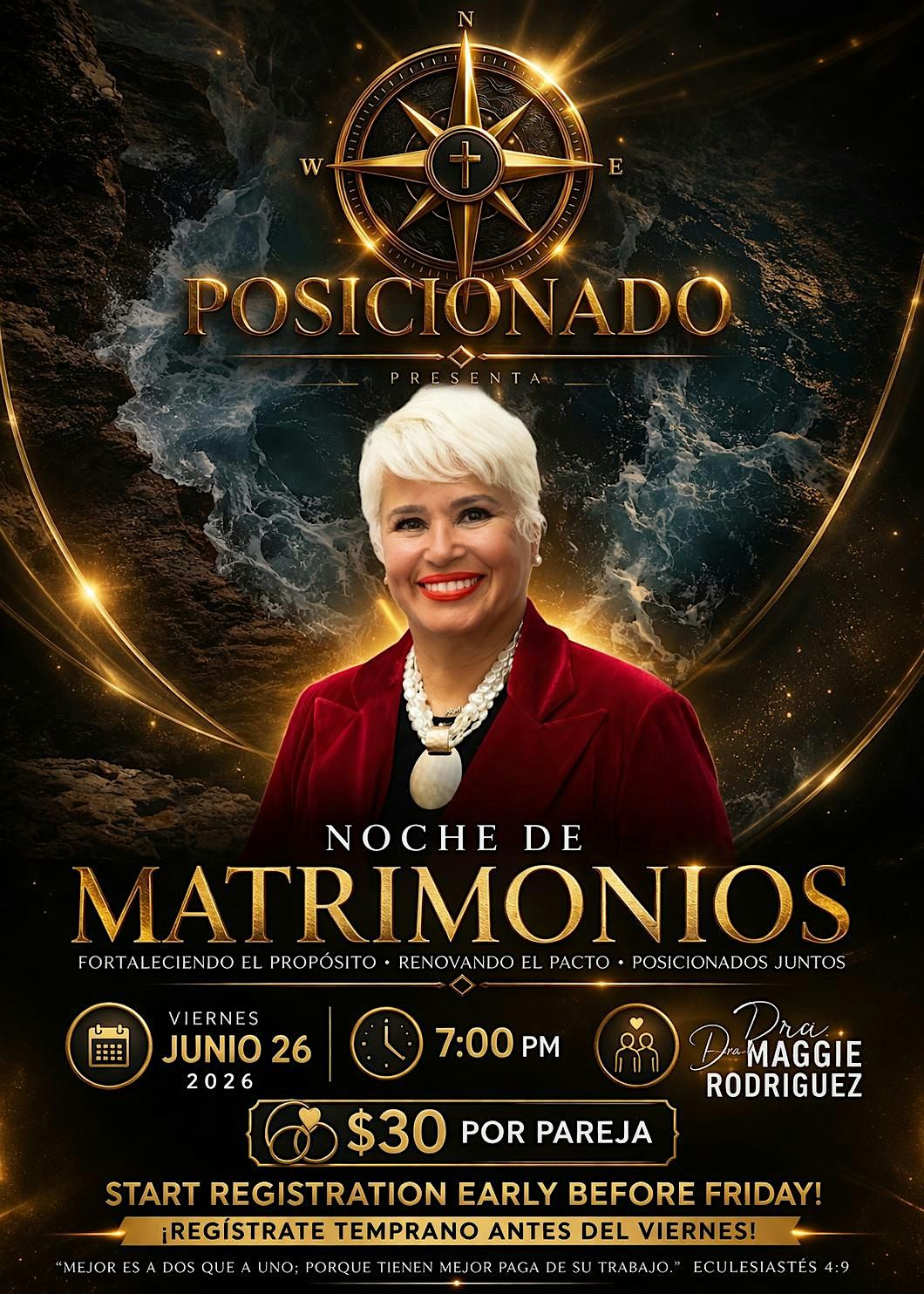 Posicionado 2026 presenta Noche De Matrimonios Viernes Junio 26 2026 a la 7:00PM (SOLAMENTE MATRIMONIOS). Sera una noche informal