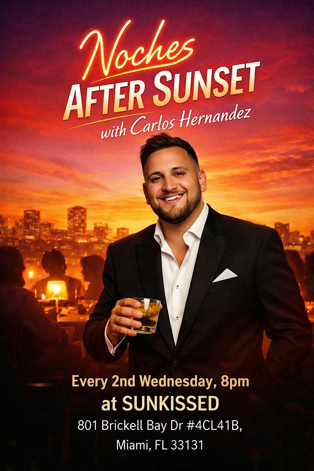 Step into golden hour and let the night unfold at Noches After Sunset with Carlos Hernandez.