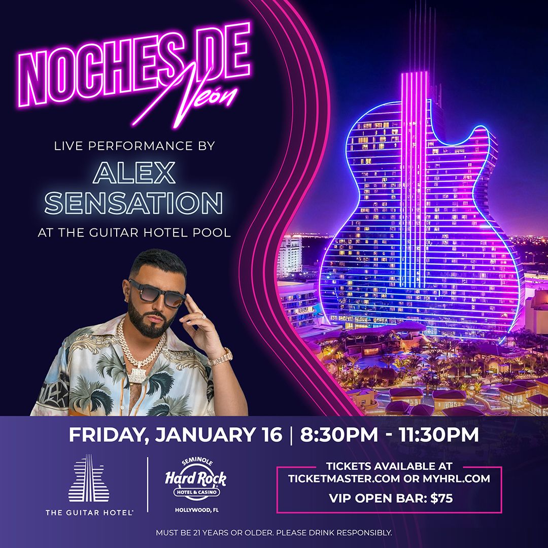 π Be part of history at Noches de Neon with Alex Sensation at Hard Rock Live - Hollywood, an extraordinary gathering that will captivate your imagination! ποΈ The prestigious Hard Rock Live - Hollywood in Hollywood, FL sets the stage for an unforgettable experience on January 16th, 2026 at 08:30 PM. β¨ They are bringing together the finest elements of entertainment and innovation to create moments that will take your breath away. From the moment you arrive, you'll be immersed in an atmosphere of wonder and excitement. π― This carefully planned event ensures every guest experiences something truly special. π Early booking is recommended for this must-attend event of the season!