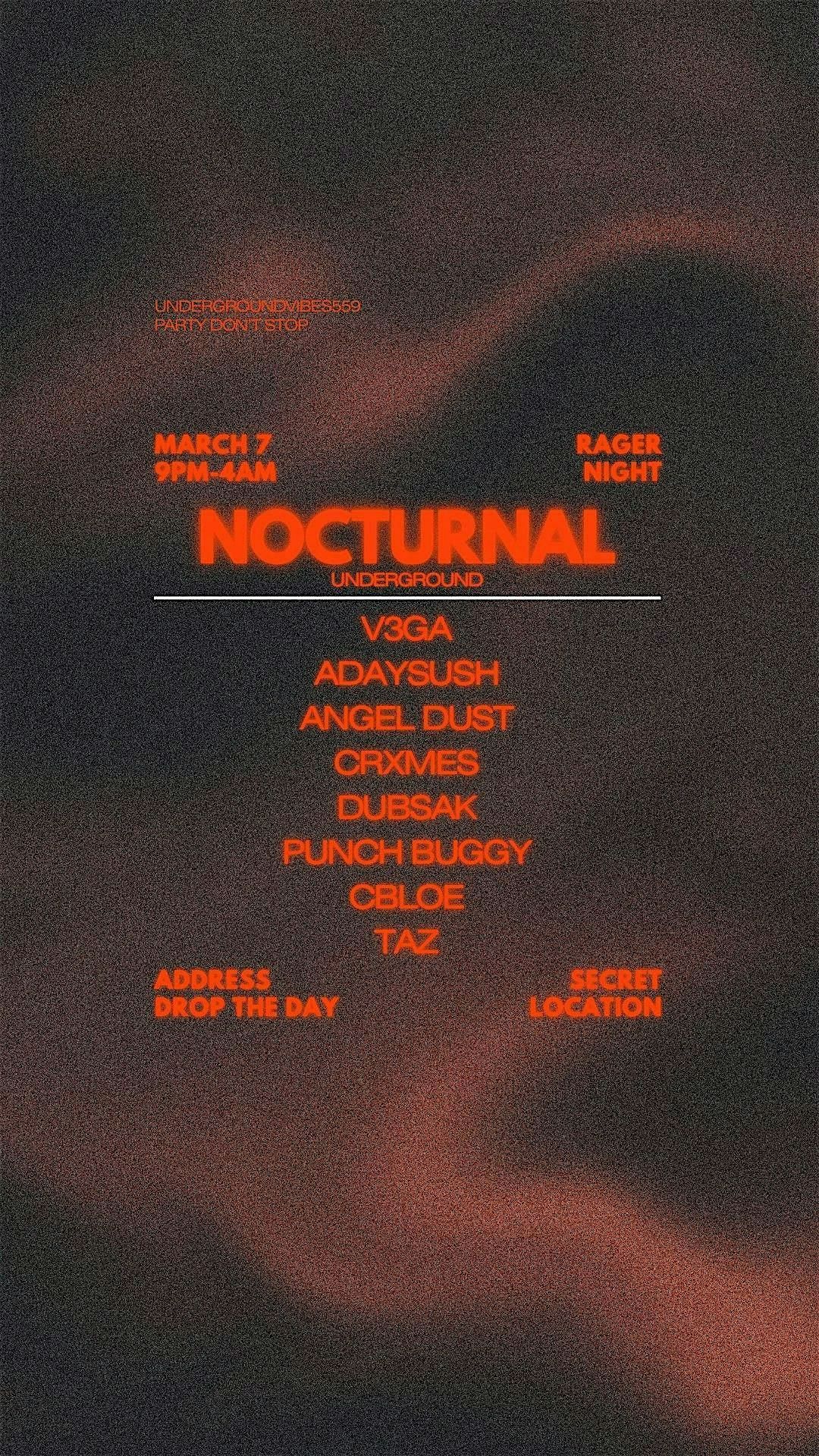 Nocturnal Underground (18+) March 7, 2026 - 9PM-4AM - SALE ENDS: March 4th! Do Not Post Address, Thank you - Fresno, CAAbout this Event