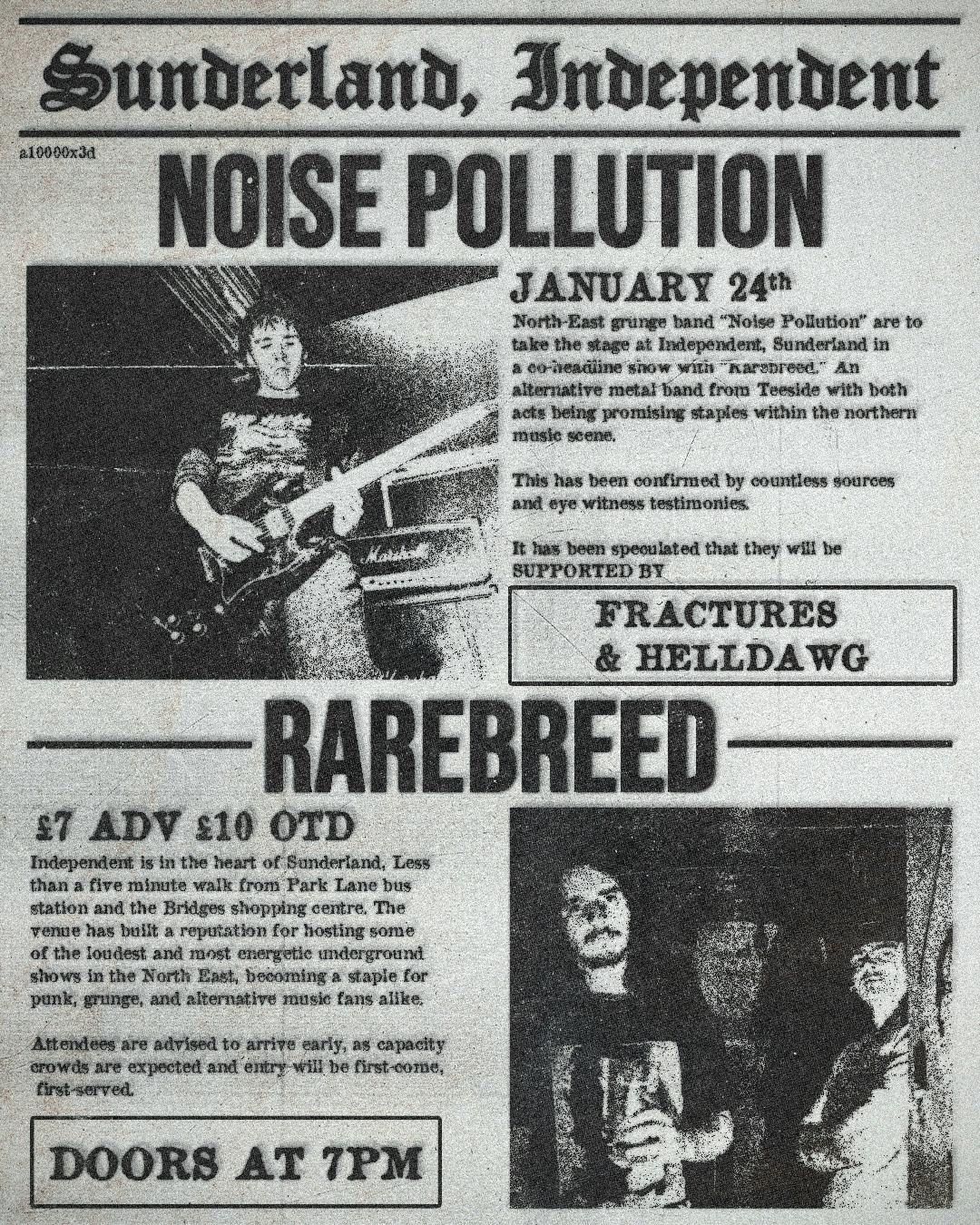 North-East based grunge band "Noise Pollution” are to take the stage at Independent, Sunderland, in a co-headlining show with “ Rarebreed”, an alternative metal band from Teeside, joint on support by Hell Dawg and Fractures.Disclaimer: