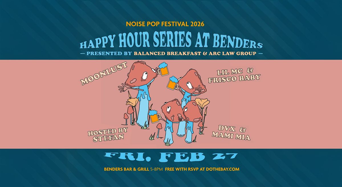 Join us for an epic Noise Pop Happy Hour at Benders in San Francisco for MOONLUST, LIL MC, FRISCO BABY, DVX, and MAMI MIA Presented by Balanced Breakfast & ARC Law Group
