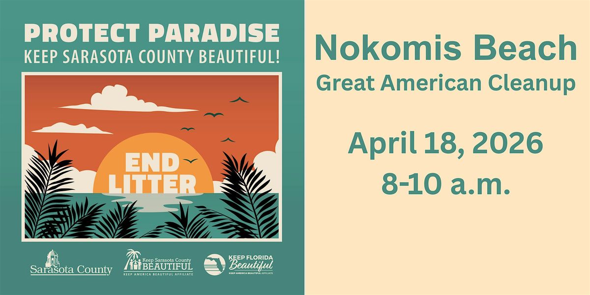 Join Keep Sarasota County Beautiful on Saturday, April 16, 2026, at Nokomis Beach Park for a morning of community service and positive impact. Locally, as part of the Great American Cleanup, a nationwide initiative led by Keep America Beautiful (KAB), we’re uniting with volunteers across the country to remove litter, revitalize public spaces, and make our communities cleaner and more vibrant.