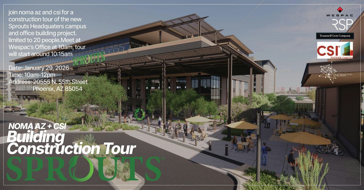 Experience an architectural and construction tour of the new Sprouts headquarters campus by RSP, Trammell Crow, and Wespac. This is event will be for CSI, NOMA, NOMAS, and students only.