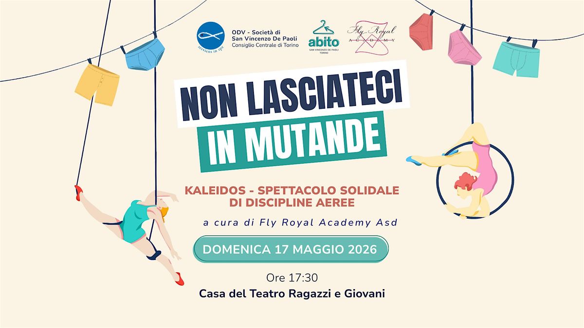 Domenica 17 maggio 2026 alle ore 17:30, alla Casa del Teatro Ragazzi e Giovani di Torino (con il patrocinio della Città di Torino), va in scena “Kaleidos”, uno spettacolo di discipline aeree che unisce arte e solidarietà.