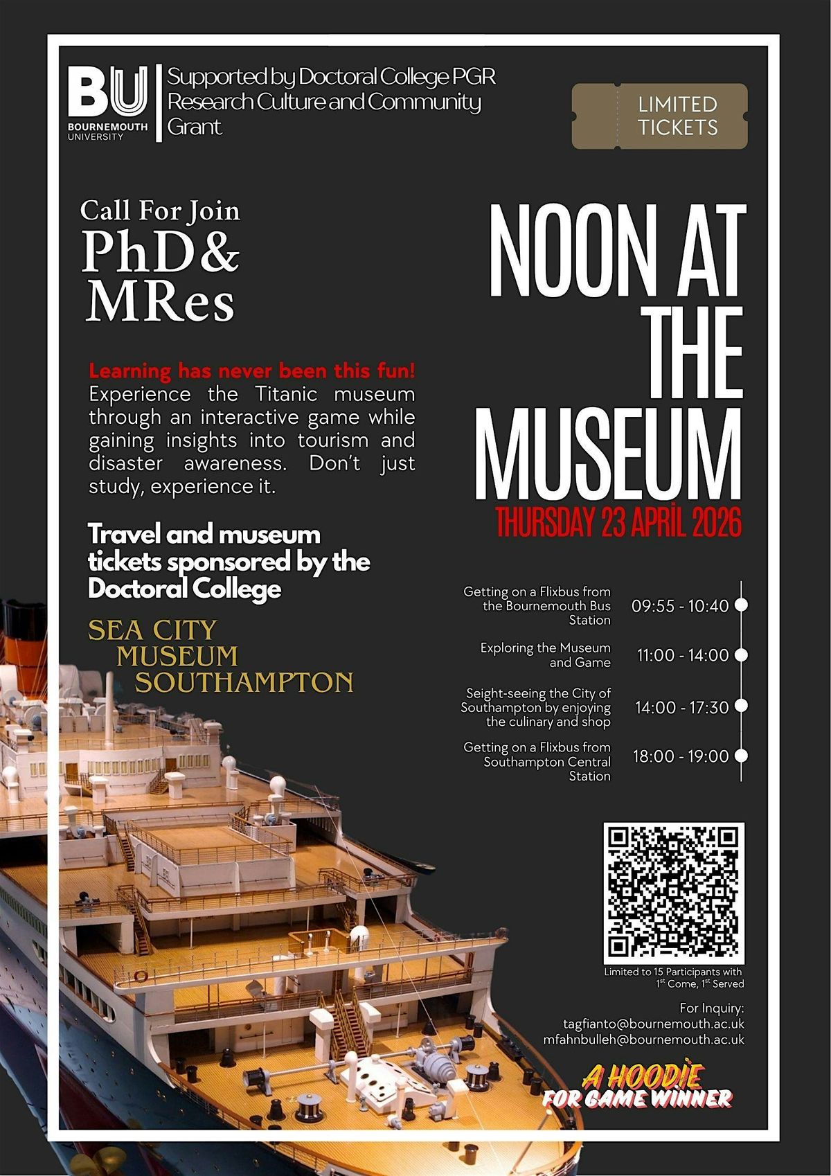 This program is limited to BU PhD and MRes students only. A manual verification will be run to check the eligibility.