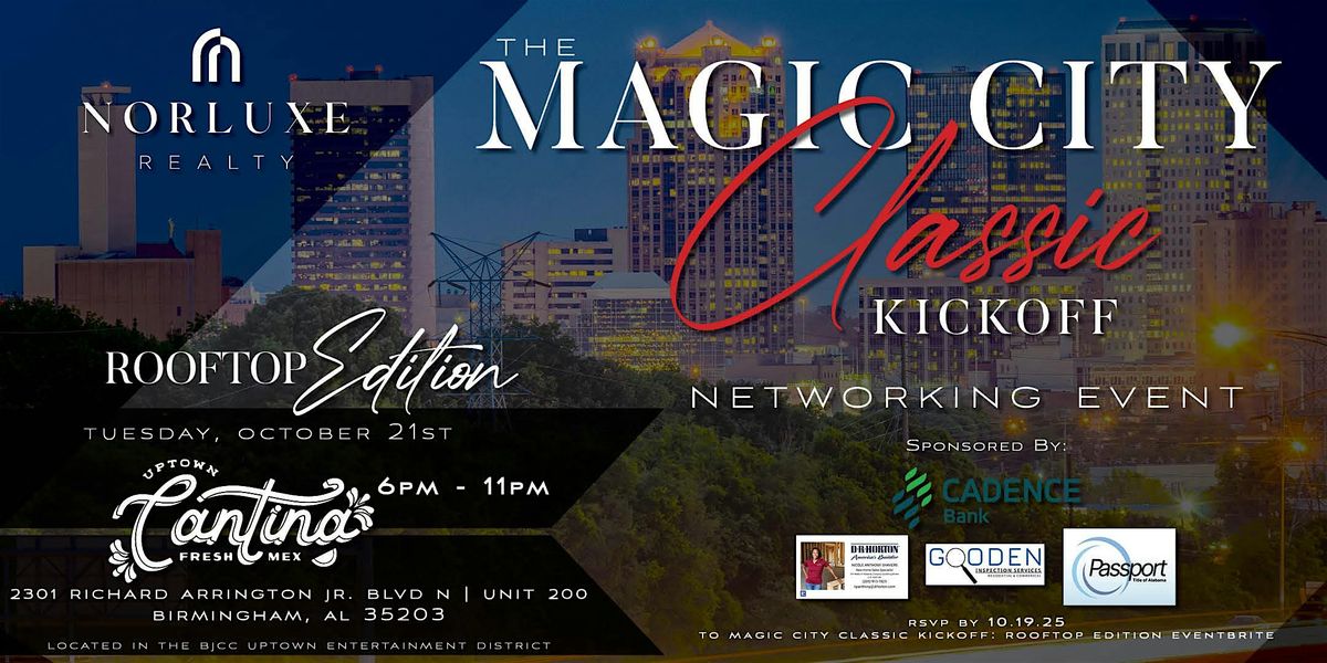 Welcome to Norluxe Realty's exciting event, "The Magic City Classic Kickoff Event"! Join us at Uptown Cantina for a night of fun, networking, and celebration. This in-person event promises to kick off the Magic City Classic in style. Don't miss out on this fantastic opportunity to connect with fellow real estate professionals and enjoy a great time. Mark your calendars and get ready for an unforgettable evening!