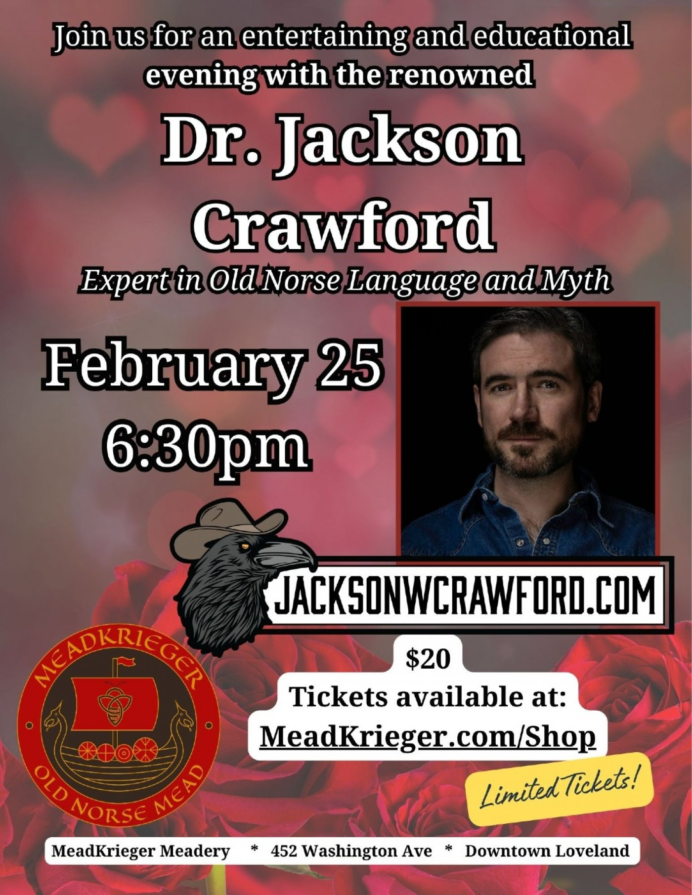 MeadKrieger is proud to welcome Dr. Jackson Crawford, renowned scholar, author, and expert in Old Norse language, myth, and culture, on Wednesday, February 25th at 6:30 PM.