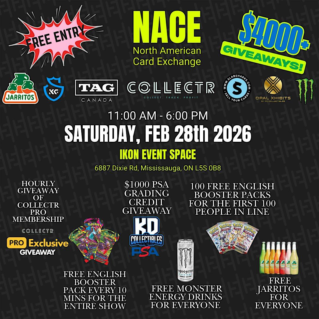 Largest TCG Event in Ontario. First 100 People get FREE English booster packs, $10 off PSA submissions & EVERYONE gets FREE Monster Energy.About this Event