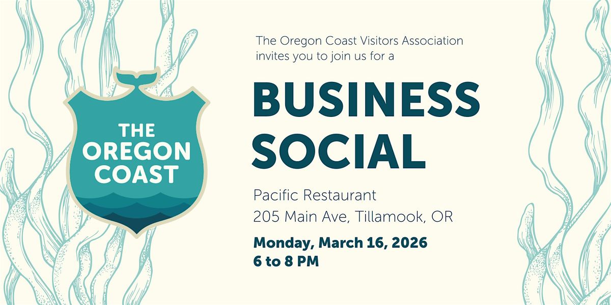 Tourism-related businesses and organizations are invited to join OCVA for a North Coast Business Social on Monday, March 16 from 6 to 8 p.m. Pacific Restaurant (205 Main Ave, Tillamook).