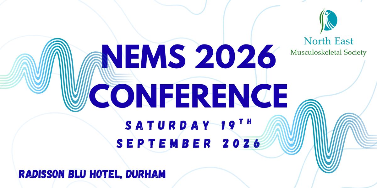 Join us at the NEMS 2026 Conference for quality lectures, workshops and networking opportunities to all MSK clinicians! We have a fantastic line up including Angela Jackson (Paediatric Physio), Jo Gipson (Womens Health Specialist), Cormac Ryan (Champion for the Flippin' pain campaign) and Ben Whybrow (Communication Skills Educator and Pain Physiotherapist).
