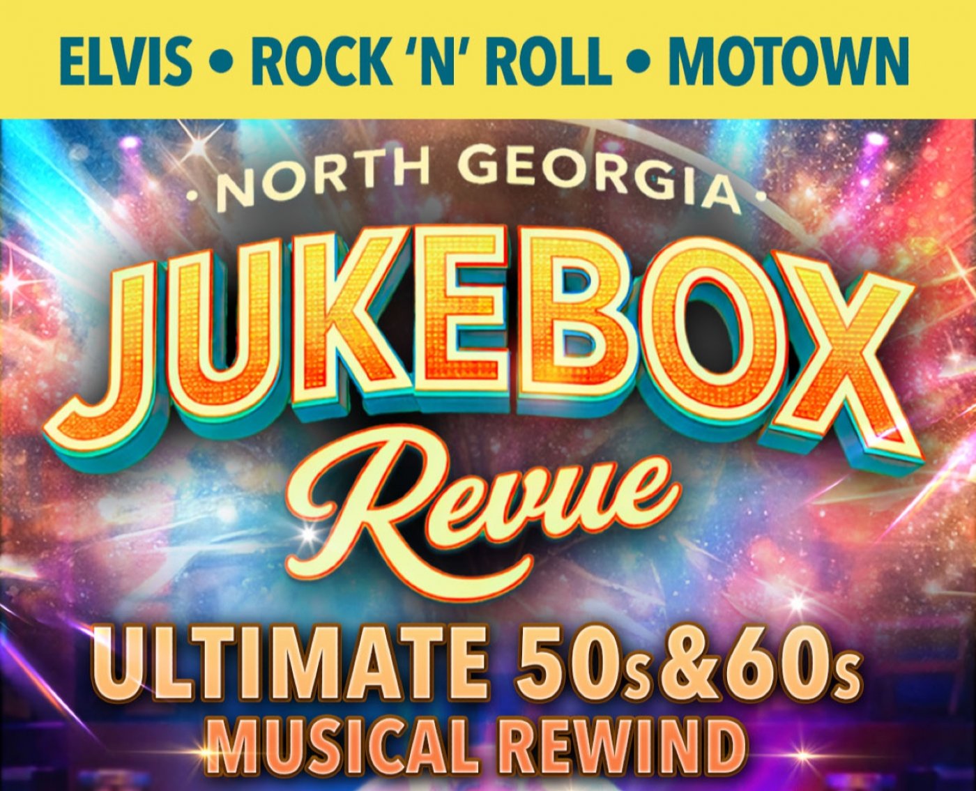 Step back in time and crank up the nostalgia with North Georgia Jukebox Revue — a high-energy musical rewind through the unforgettable sounds of the 1950s and 60s! This toe-tappin’, heart-thumpin’ stage show celebrates the golden era of rock ’n’ roll, doo-wop, Motown, and more, brought to life by a dynamic cast of singers and dancers.