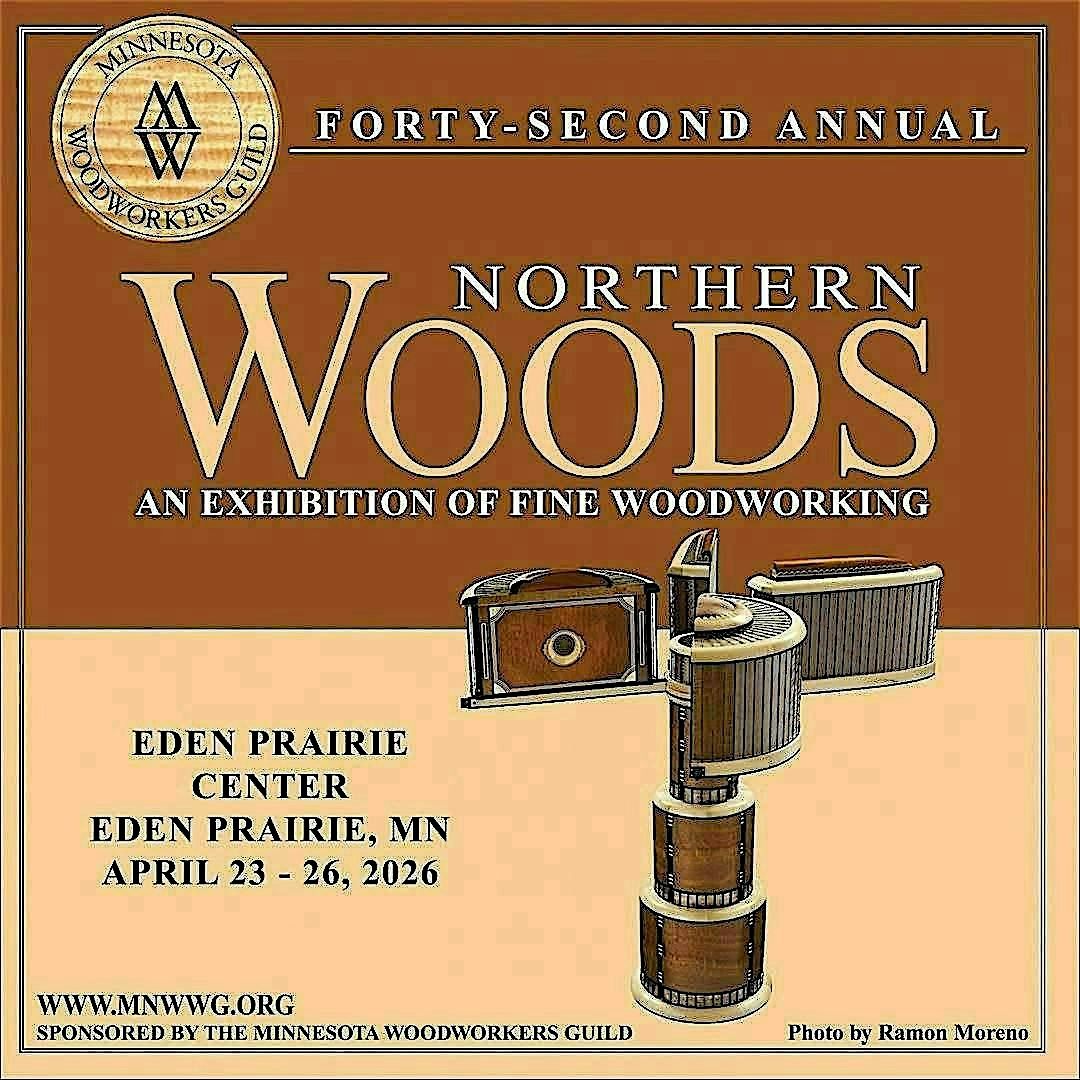 Free event in the Rotunda of the Eden Prairie Center. Features a display of fine woodworking by the Minnesota Woodworkers Guild. Saturday April 25, 2026 form 2:00 - 4:00 is Meet the Maker.