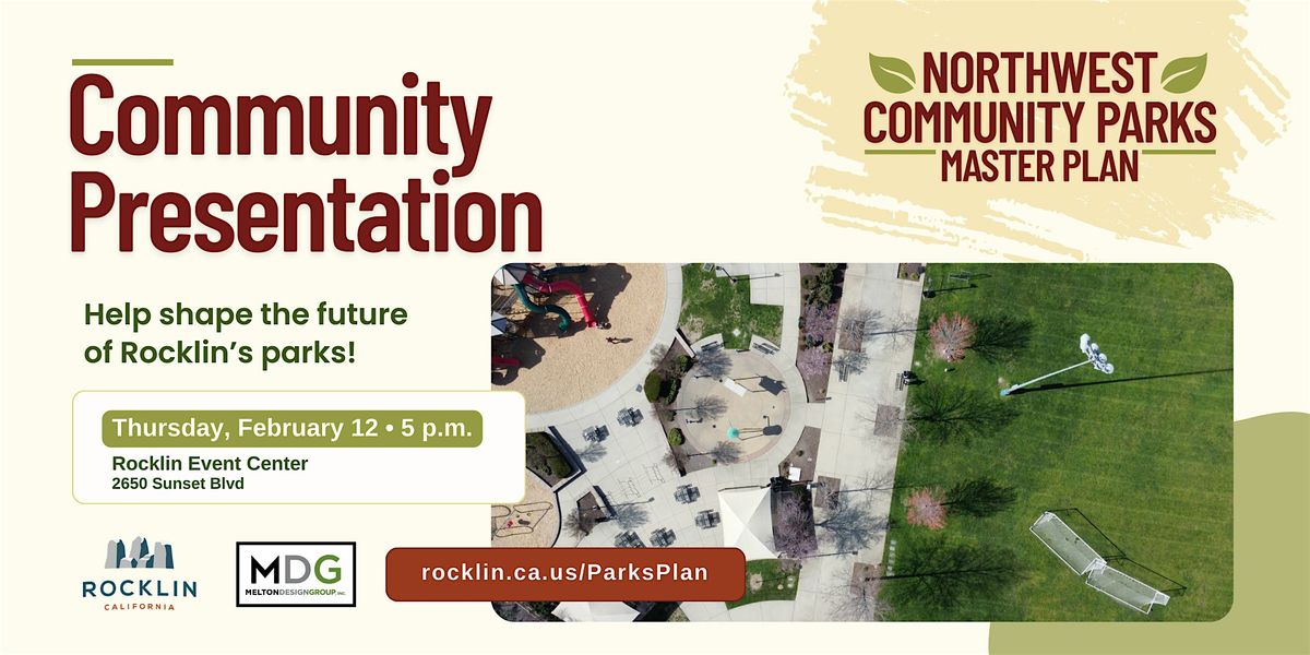 This in-person presentation will present the collective findings, draft concepts, and proposed improvements for all three parks. Community members will have an opportunity to review the recommendations, provide final input, and help ensure the plan reflects the needs and priorities of Rocklin today and into the future.