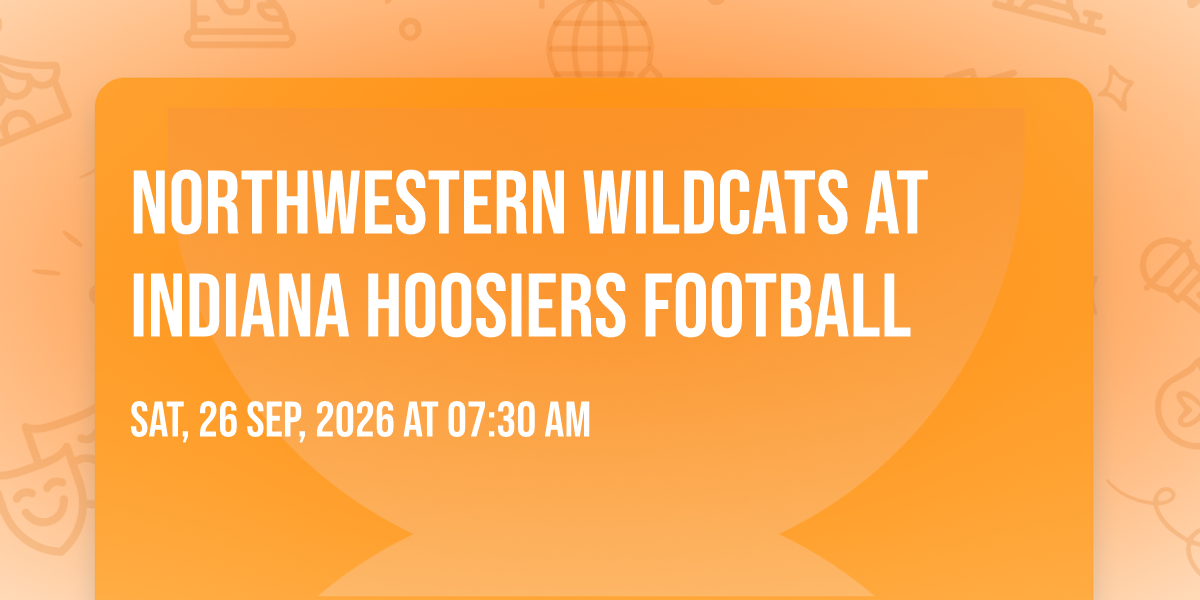 📍 Location: 39.1809, -86.5256🎉 Welcome to Northwestern Wildcats at Indiana Hoosiers Football, where dreams come alive and possibilities are endless! 🏛️ Join us at Merchants Bank Field at Memorial Stadium in the heart of Bloomington, IN for an event that defies expectations. 📅 On September 26th, 2026 at 07:30 AM, be part of something truly extraordinary as we bring together innovation, entertainment, and pure magic. ✨ Every aspect has been carefully designed to ensure an unforgettable experience for all our guests. Whether you're seeking adventure, inspiration, or simply a break from the ordinary, this event promises to deliver beyond your wildest dreams. 🎊 Prepare for a journey into the extraordinary!